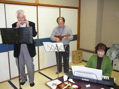 ![]() 当クラブ員で構成した音楽バンド こんな練習をいつの間にしていたのだろう 「お気軽バンド」というらしい。クラブ員の多才に驚く。 |