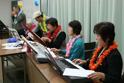 日 時: 平成21年12月20日(日) 14時〜17時 会 場: 茨木市 福祉文化会館の2F 202号室 参加者: 43名今年の忘年会は、司会の自称”茨木の上沼恵美子”さんの名調子に加え、 バンド演奏、手品、福笑、じゃんけん大会などで盛り上がった。 出席人数も昨年を超え、43名となった。 (写真提供 村上氏)