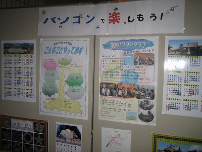 ![]() 茨木パソコンクラブのブース パソコンクラブのブースはパネル2枚と机1ツ。 |